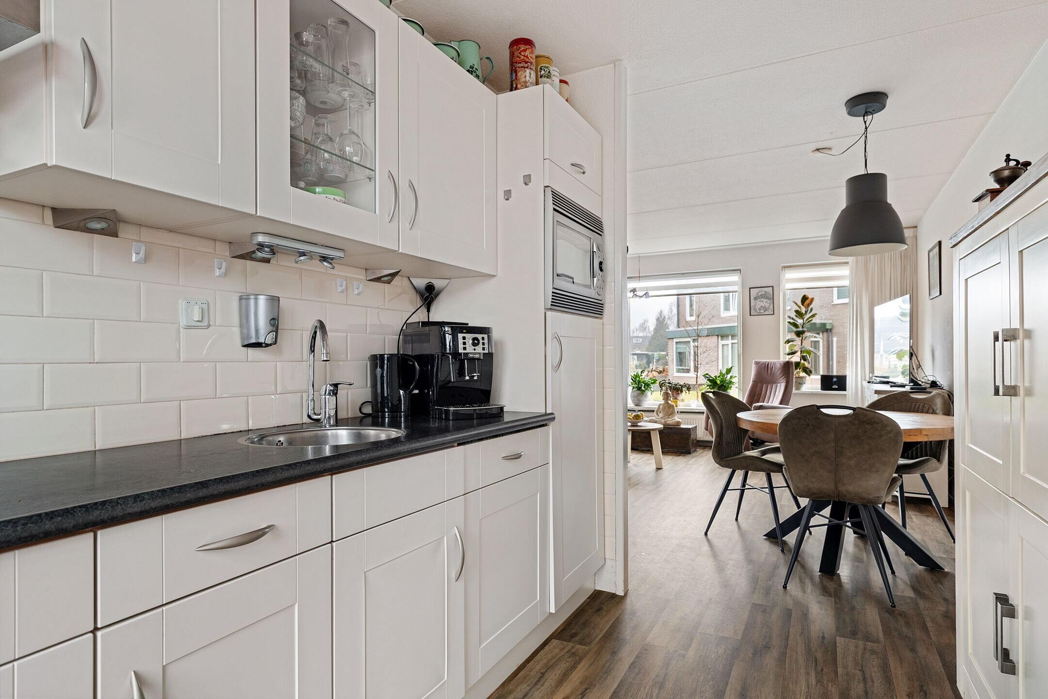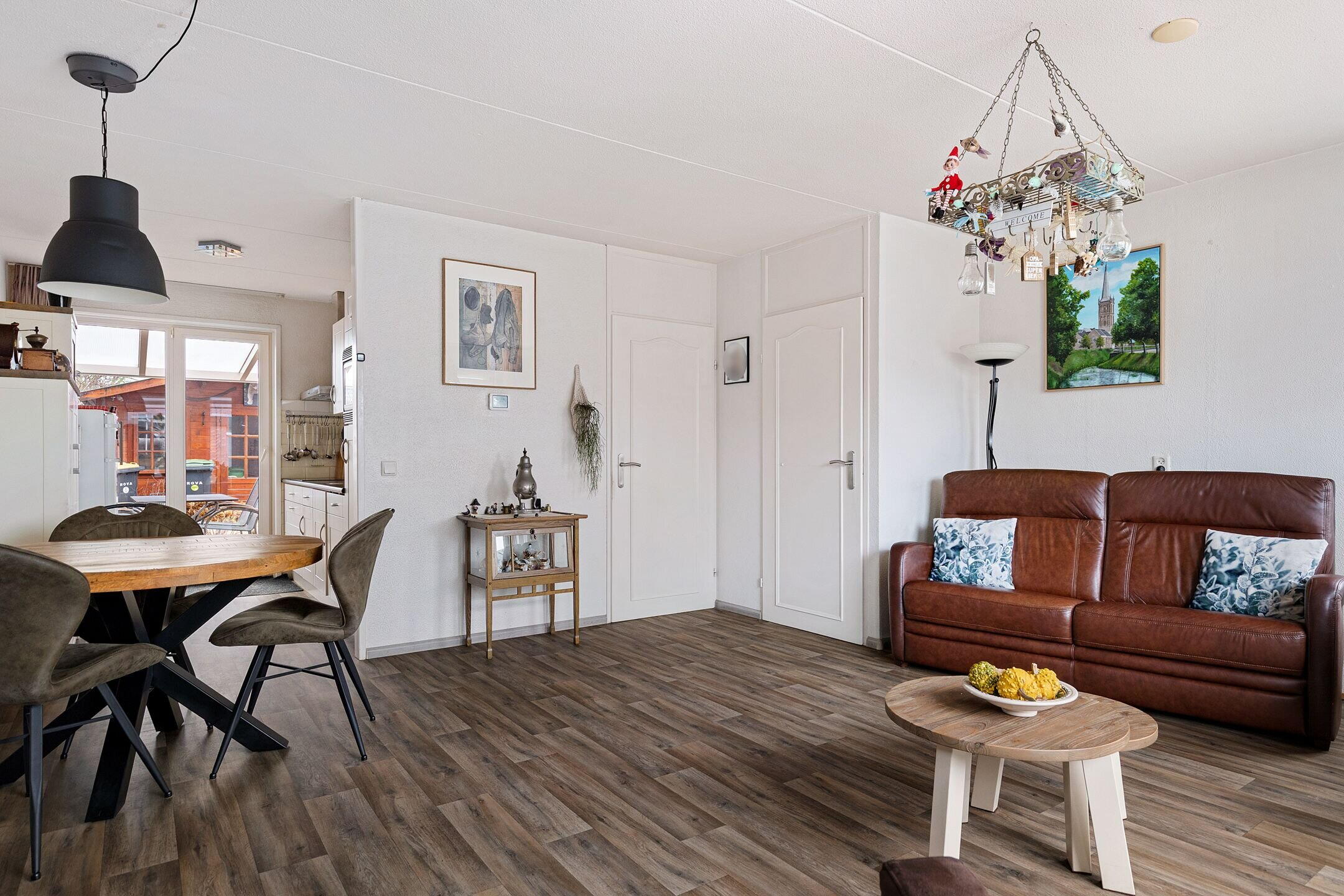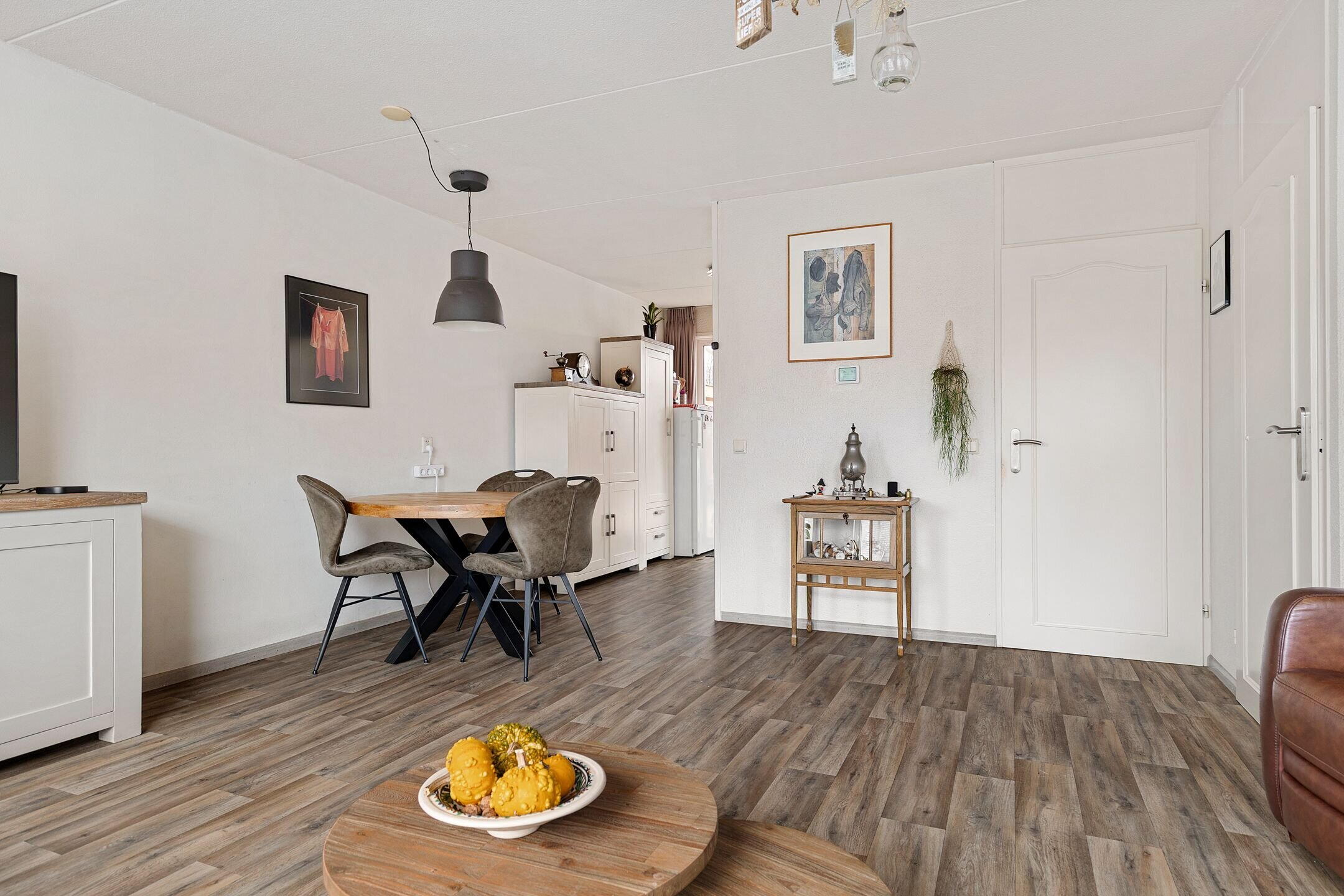 De woonkamer is heerlijk licht dankzij de grote raampartijen en is afgewerkt met een stijlvolle houtlook novilon vloer. De open keuken is voorzien van diverse inbouwapparatuur en beschikt eveneens over een grote raampartij met directe toegang tot het terras.