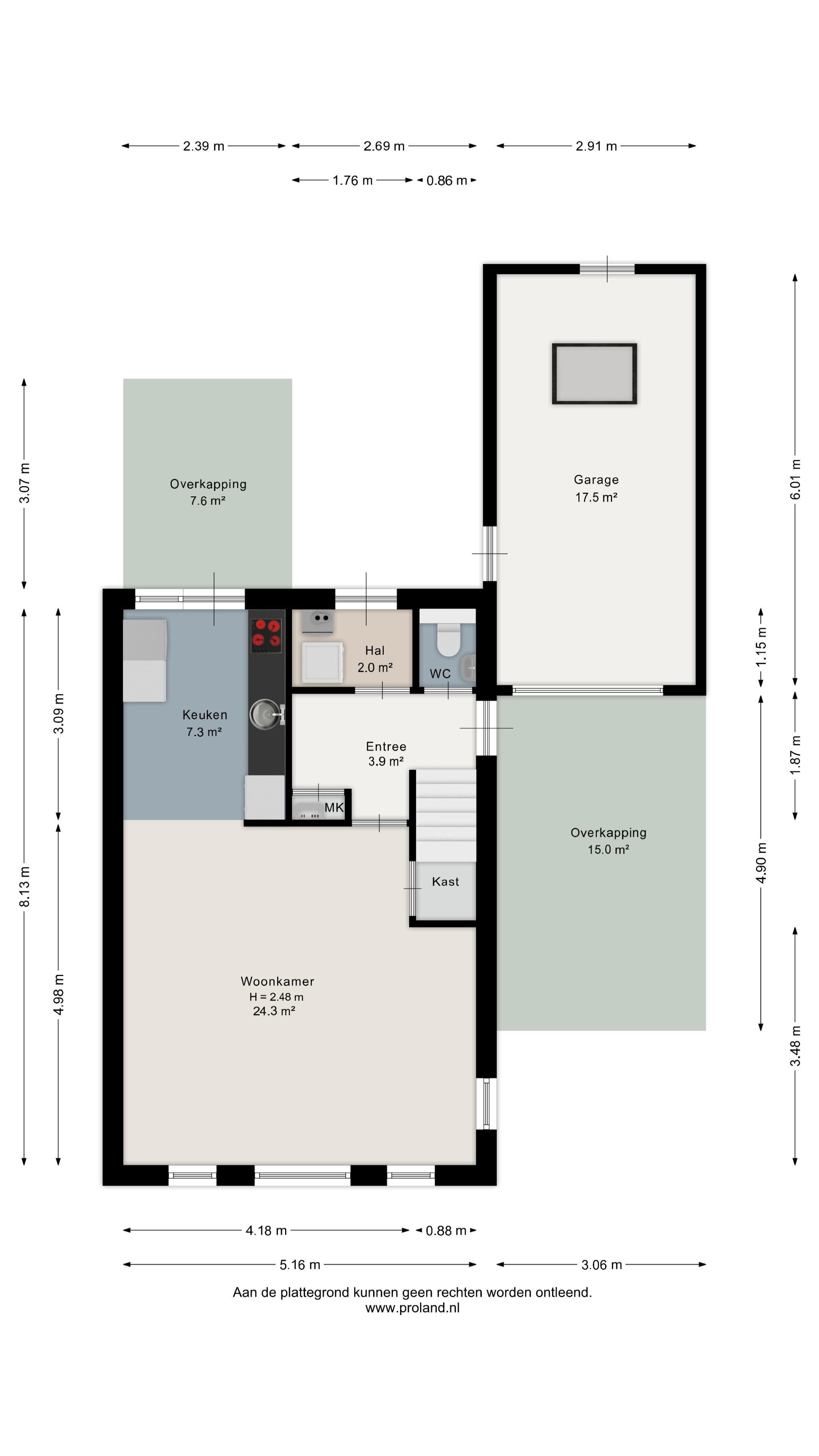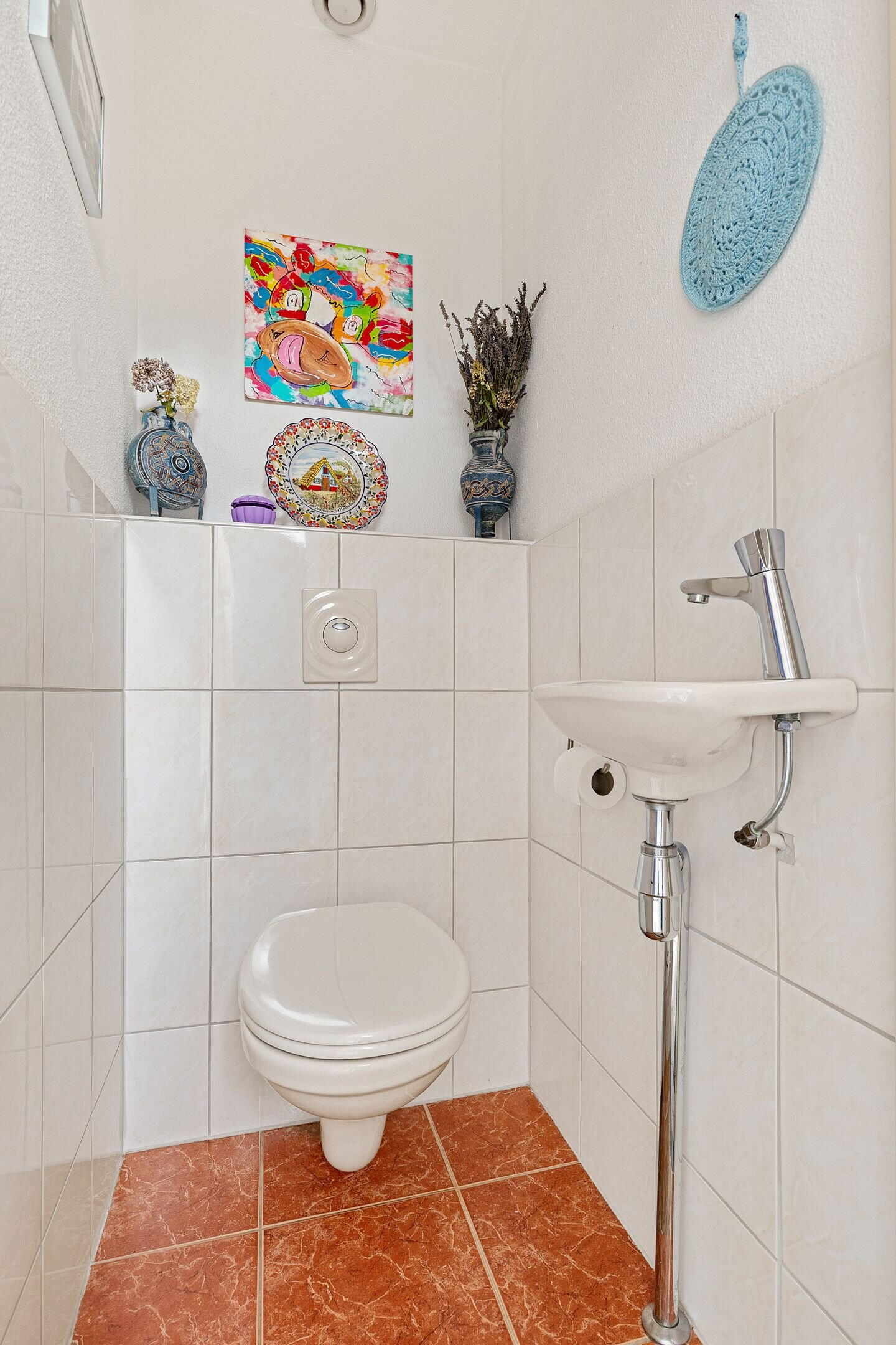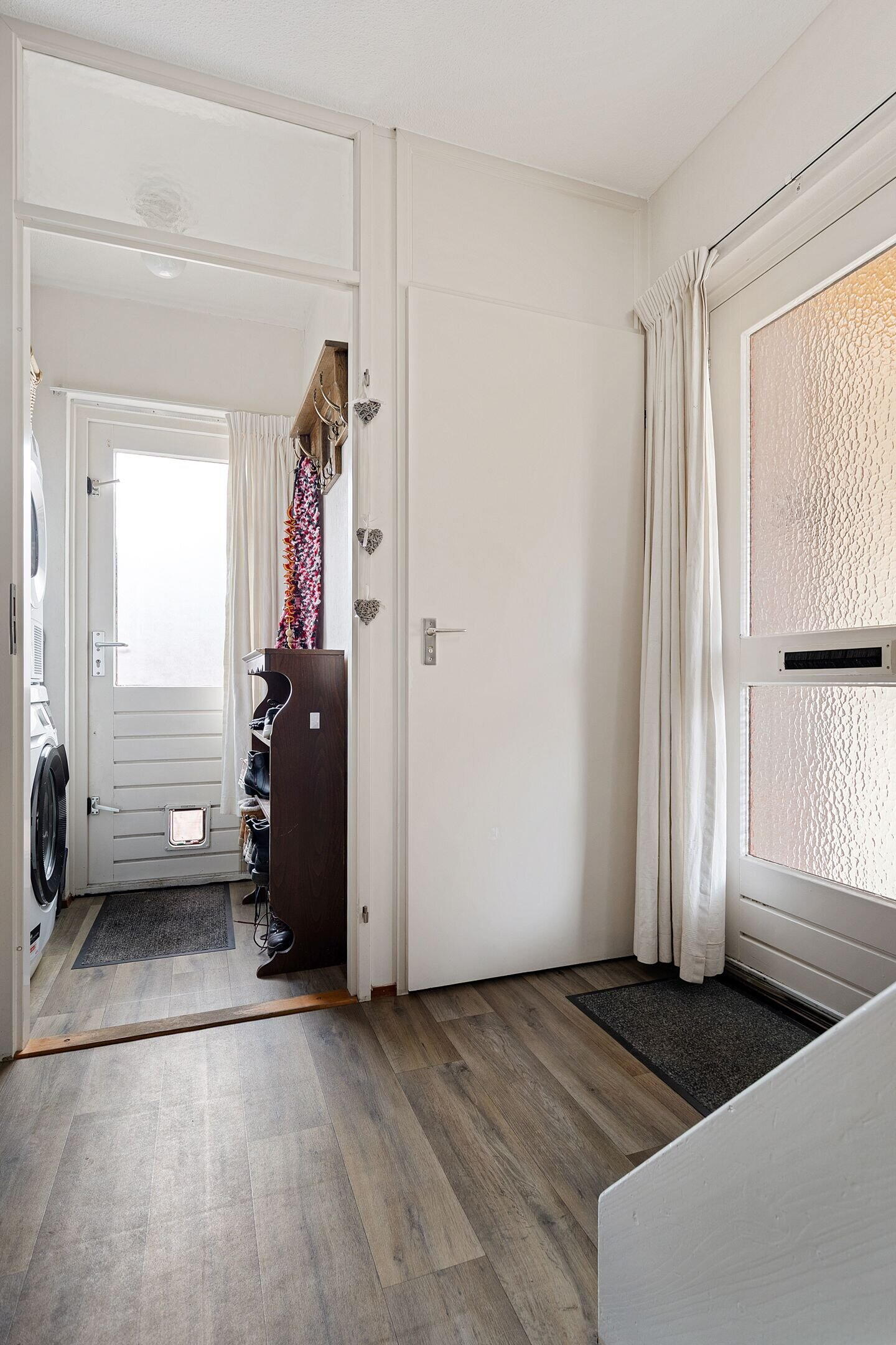Entree met hal, toilet, meterkast en trapopgang. Vanuit de hal is er toegang tot de bijkeuken, waar zich de opstelplaats voor de cv-ketel, de witgoedaansluitingen en de achterdeur bevinden.