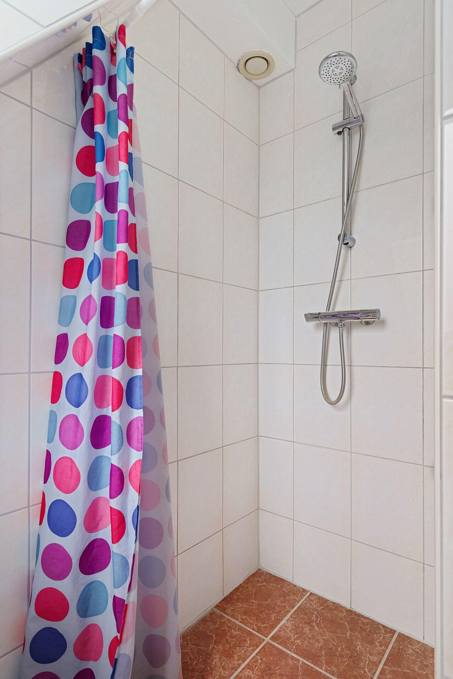Overloop met trapopgang, drie slaapkamers en de badkamer. De badkamer is uitgerust met een ruime inloopdouche, een wastafelmeubel en een tweede toilet.