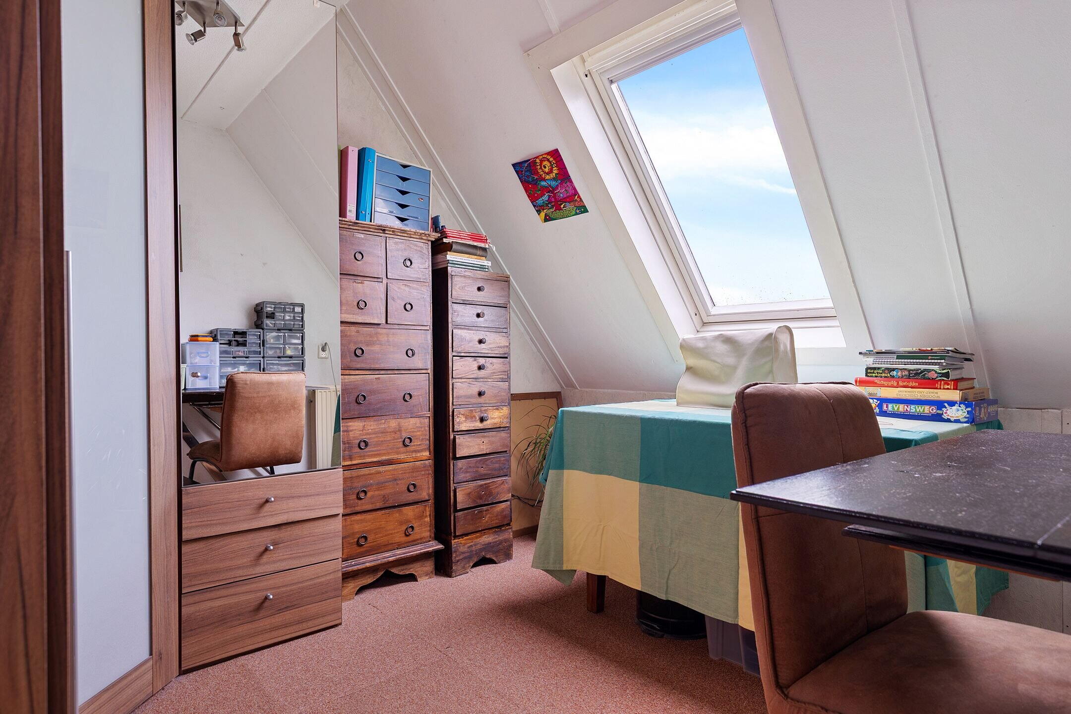 De zolderruimte is voorzien van een dakraam en biedt volop praktische bergruimte.
